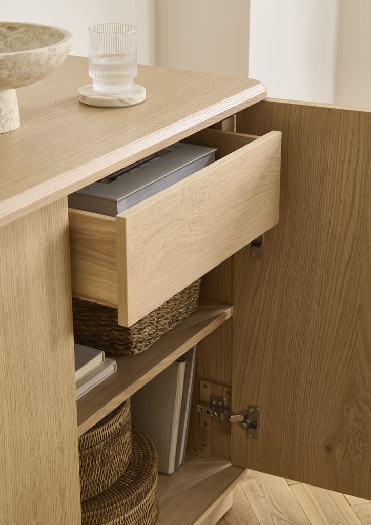 A lighter take on contemporary design, a straight-grain oak vaneer statement, effortlessly refined.